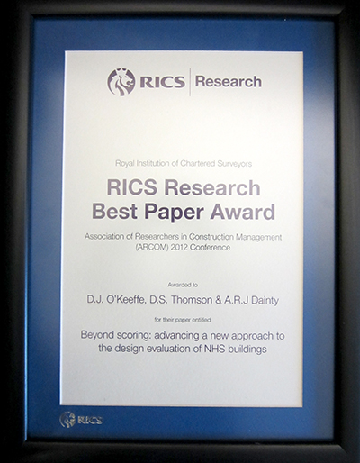 One of the PhD students I brought with me to Loughborough won the RICS Best Paper Award at this year’s ARCOM conference: a real accolade and rewarding of his hard work. It’s nice to see the academic community recognise the originality and depth of thinking. It’s largely the student’s efforts, but the supervisors had a role to play, too.